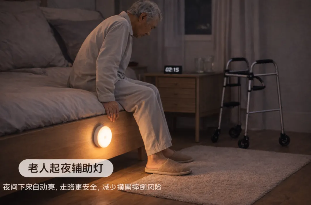 也会把它写成“老人起夜辅助灯”,夜间下床更安全、减少摸黑摔倒风险: