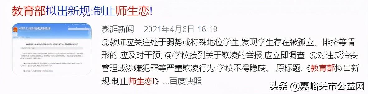 前段时间,教育部关于《未成年人学校保护规定》公开征求意见,明文规定:制止教职工与学生发生恋爱关系。