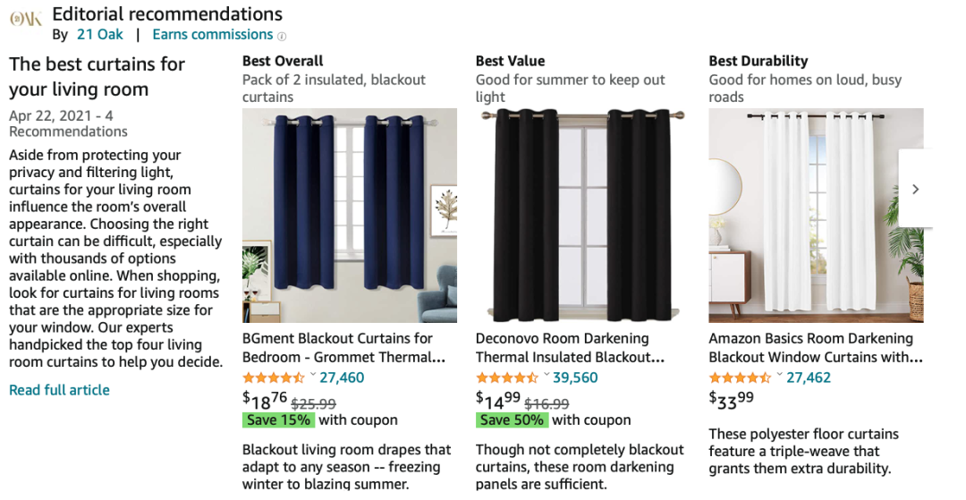 总部位于绍兴的家居大卖沐家家居,主营产品包括窗帘、靠垫、床品、桌布、围裙、沙发套、椅子套、餐垫、浴巾、户外家具罩等生活家居用品和家居户外用品等。沐家家居旗下的窗帘品牌,是亚马逊上的热销单品,经常能在"Editorial recommendations"上看到。