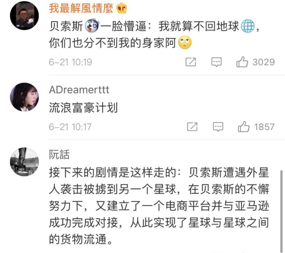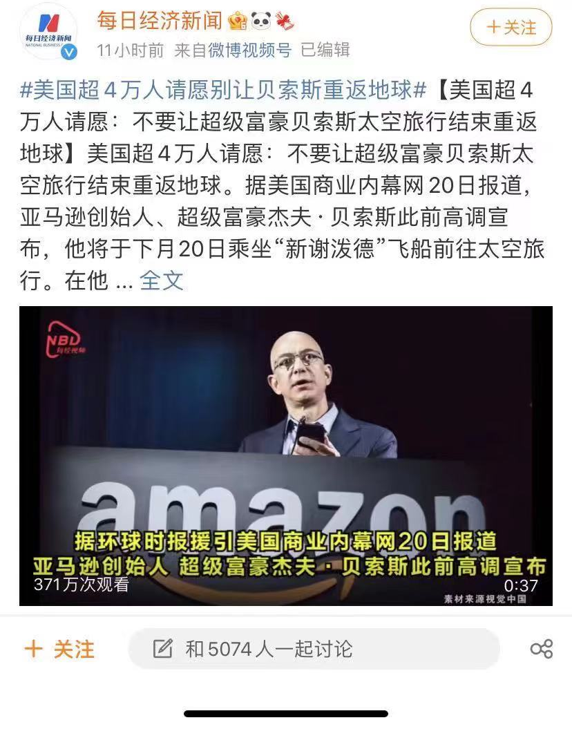 网上就出现"别让贝索斯重返地球"为主题的请愿,