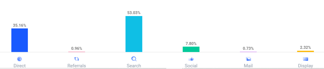 根据 similarweb 的数据显示,「FIGS」官网的流量基本上都是自然流量,占比中来自社交媒体的流量占到 7.8%,这样来看,社交媒体的营销还是给「FIGS」带来了不错的效果的。