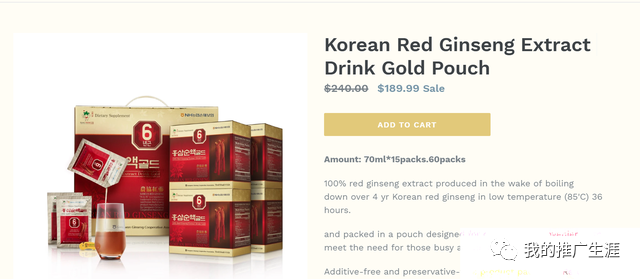 这个网站主要是卖韩国红参的,一般很难想象到去卖这个,产品从几十美元到几百美元都有,整个网站产品数量就几款。