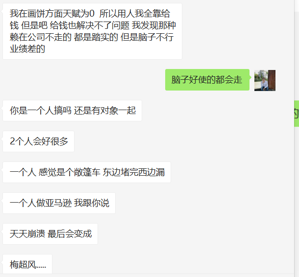 这不就是我一年前的状态,感觉怎么做都没有出路的时候,想抓住一根救命稻草。很遗憾的,我告诉他,我不是,任何人都不是,只有你自己才是你自己的救命稻草。我可以教你运营,我可以教你选品,我也可以教你测评刷单,我甚至可以把手里供应商都给你,但是赚钱这个事情,需要你自己摸索。