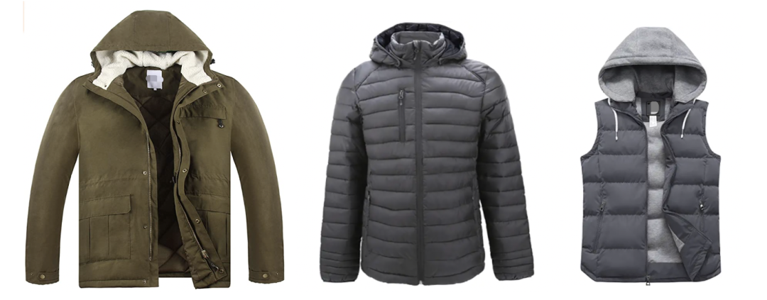 - 背心类:常规背心以商务穿搭为主,近几年逐渐流行起电热背心,即背心内置碳纤维加热器,可以调控温度级别,并采用透湿性强的面料;电热背心采取拉链设计,穿脱方便,顾客追求轻薄、柔软、保温效果好、不易变形等特性。电池需要PSE认证;附图要清晰地展示衣物结构与功能,体现安全性和专业性