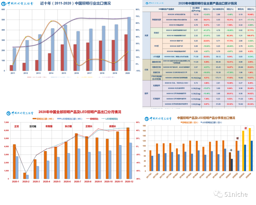 跟整个外贸大形势一样,2020年中国照明行业出口逆势增长,出口总额首次突破500亿美元,不仅远远超乎预期,并大大刷新历史纪录。