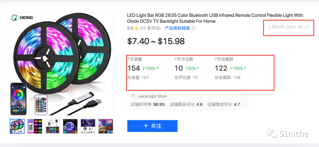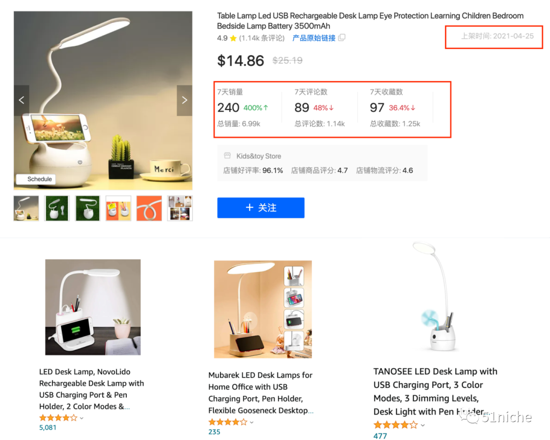 这个小可爱台灯在2021年4月25号发布,7天销量达240,2个月的总销量达到6.99K,增长率很高。