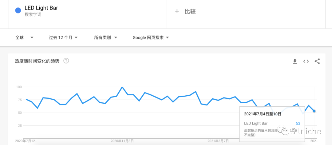 再来看看google Trends ,LED Light Bar 这个词在美国乃至全球的搜索热度都还是很不错且比较稳定的