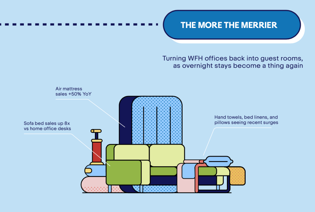 ✦ 沙发床销售是家庭办公桌销售的8倍。