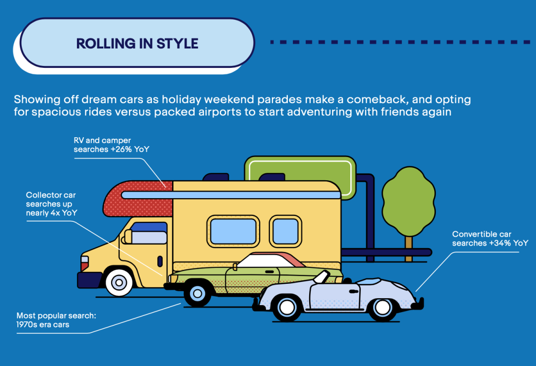 ✦ 最热门的搜索类别:1970年代的汽车。因此,收藏车的搜索量同比增长近4倍。
