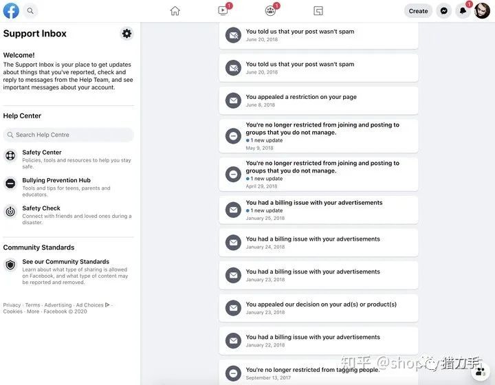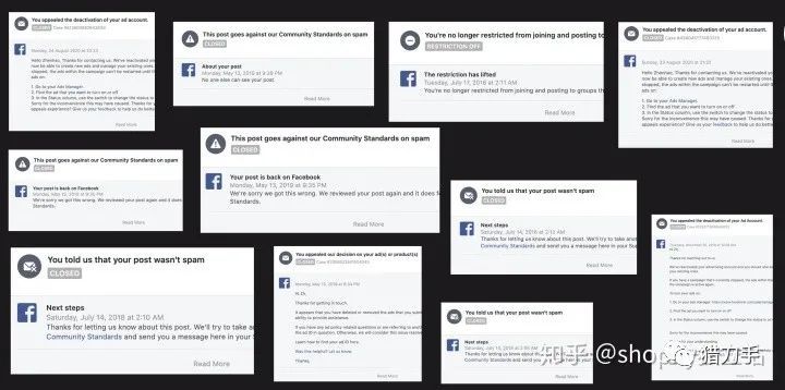 下面是我其中一个账号的申诉记录,记录着fb的种种傻逼封号行为。