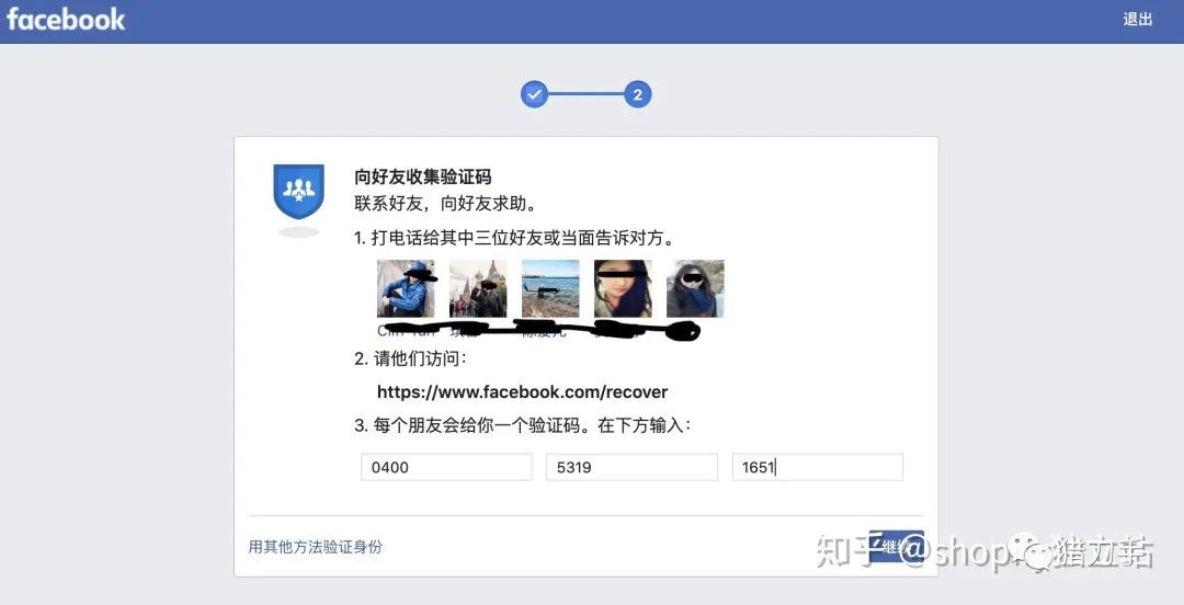 所以我能选择的就只能是联系剩余的3个人。幸好这3个好友都是大大的好人,很爽快就打开了https://www.facebook.com/recover的页面帮我拿到解封码。