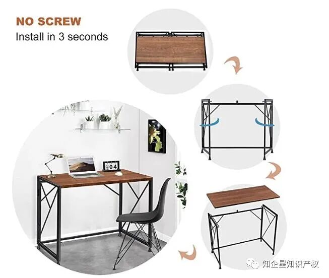常规的办公桌最大的痛点就是结构固定、体积大,不容易拆卸移动,这款产品,通过腿部的合页可以快速折叠;桌面也采用卡扣设计,不需要借助任何工具,就可以轻松的拆卸、移动,所以卖点很明确。