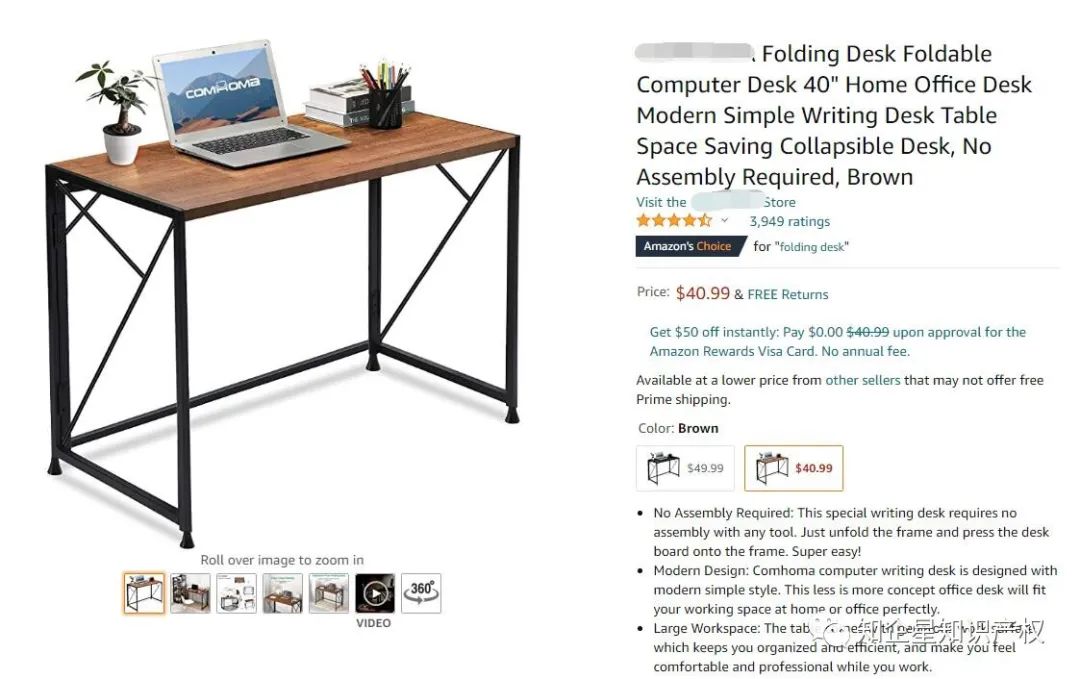 今天在亚马逊的时候,看到一款可折叠办公桌,它是美亚站的Amazon'sChoicefor "folding desk",售价40.99美金,留评3957颗星。