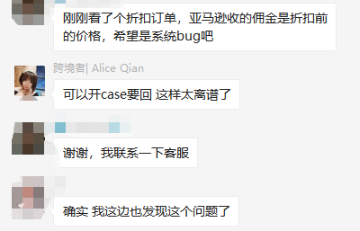 一问之下不得了,我们群里面的卖家也有很多卖家都出现了这个情况,都是被按照折扣前的原价收取了佣金,正常都是应该按照买家实际支付的金额(包含运费、包装费等等),也就是折后的价格来计算,这一前一后的差别那可是相当大,大单价的产品做个7-8折,前后相差的佣金很可能要好几刀。加上佣金是每单都扣的,受影响的金额会是一个非常恐怖的数字!