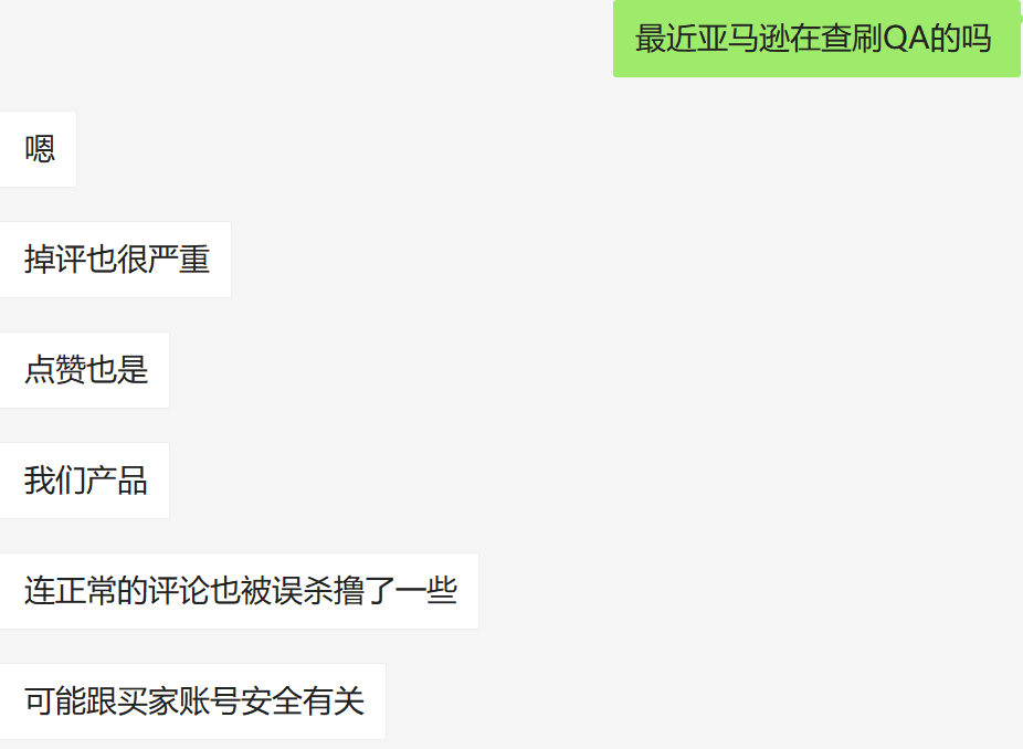废话不多说,相信大家都有从其他自媒体上看到上QA会封店的文章,这个是真的还是假的?卖家反馈因为刷了QA被风控甚至封号,收到警告的内容如下:▲图片来源于知无不言不少卖家群也在讨论这个事情:▲图片来源于卖家交流群别跟风,理性看待问题下面截图不同卖家观点:guoque•弱弱的问一句,假如我养两个买家号,用脚本去把我同行的店铺每个listing都上100个qa,类目排名我前面的都上一遍。请问这样我会变成b