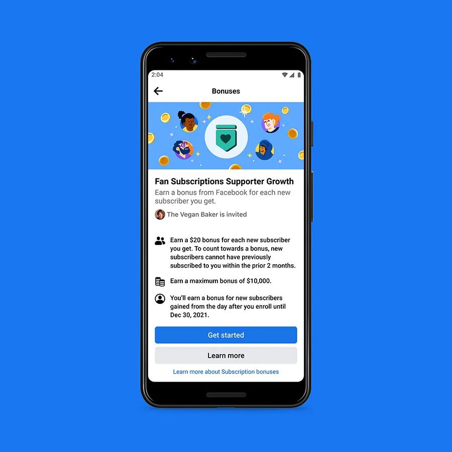 为了帮助创作者进一步完善订阅功能,Facebook 宣布将从即日起为获得新粉丝的创作者提供额外奖金,创作者每获得一位新订阅用户就可以得到 5-20 美元的现金奖励。这一奖金也是 Facebook 在 2022 年计划投入超过 10 亿美元的创作者投资中的一部分。