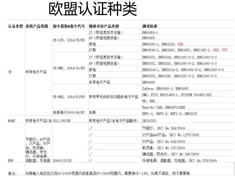 ③ERP认证(Energy-Related Products能效指令):节能灯ERP认证:NO.244、AV产品、IT产品的ERP认证:NO.1275、TV产品的ERP认证:NO.642、机顶盒的ERP认证:NO.107、镇流器、荧光灯的ERP认证:NO.245、外部电源、适配器、充电器的ERP认证:NO.278 等。