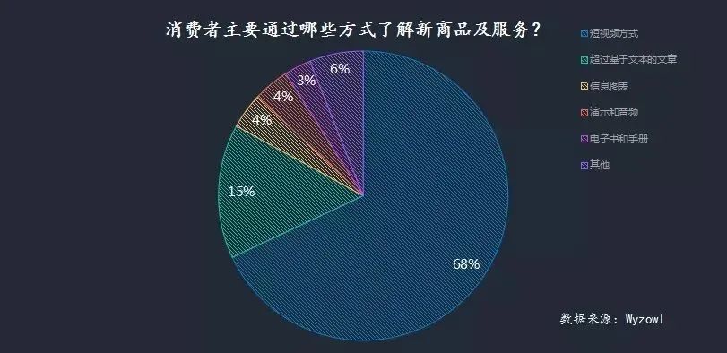 据Wyzowl此前对消费者调研的一项数据显示,有68%的消费者更喜欢通过短视频的方式去了解一款新的商品或服务,这一比列远超基于文本的文章、信息图表等呈现形式。