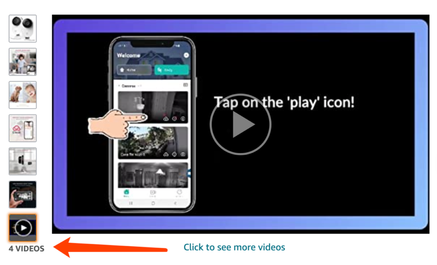 主图视频是亚马逊Listing很重要的一部分,可以说主图影响着点击,主图视频影响着转化!我们通过上图可以看到,大卖直接在主图视频的位置上传了4个视频。通过这4个视频更加生动、形象的展示摄像头在日常生活场景下的使用和产品卖点,又通过视频把前6张主图卖点强调了一遍。