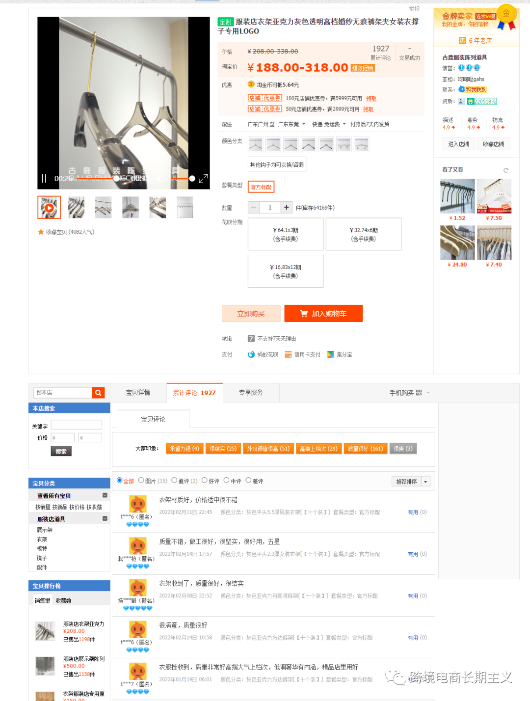 什么意思呢,我们经常会在线下的各种各样服装店去购买衣服,试想一下一个主打品牌,定位中高端的服装店铺,他们一定不会使用家用那种一两块一个的劣质衣架,都希望整个店铺的细节都散发着品牌和品味的光芒,所以他们更倾向于使用相对高端一点的衣架,这种情况下,中高端的产品也就应运而生。