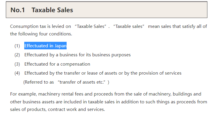 即便是非居民或者国外法人等,只要在日本国内从事征税商品、劳务的经营,就是消费税的纳税人。