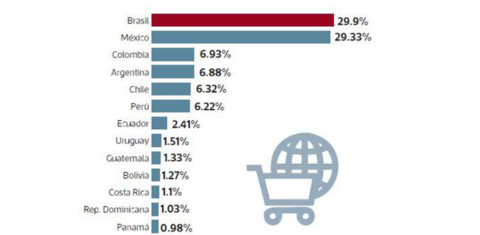 根据BlackSip的数据,2021年拉丁美洲的电子商务增长了37%。2021年秘鲁电商销售额占拉美电商总额的6.22%,是拉美国家第六大电商国家,次于巴西(29.9%)、墨西哥(29.33%)、哥伦比亚(6.93%)、阿根廷(6.88%)和智利(6.32%)。