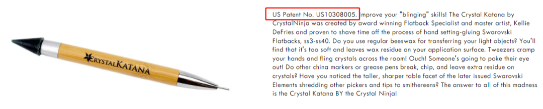 让大家能更好的区分侵权产品,详情页里面特意标注:US Patent No. US10308005.