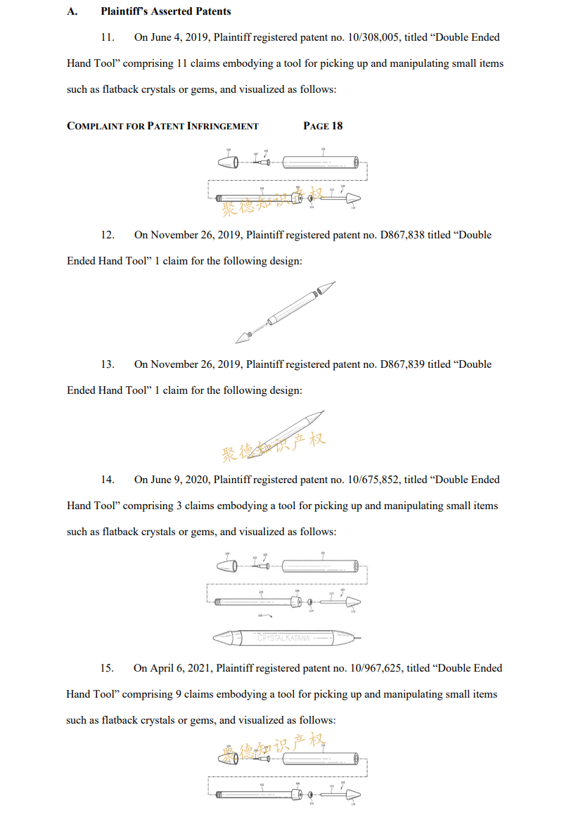 本案件专利侵权指的是用来贴水晶的双头点钻笔。