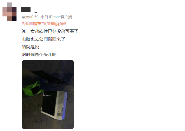 打工人C:在家里人那吃饭,突然的警车声和深圳地铁公交停运的消息,有点吓人。然后就是慌忙的加入搬电脑和囤货的行列。