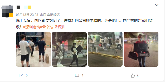 打工人D:昨夜的深圳魔幻至极,一群人在飞奔向公司拆电脑拆主机……一群人带生活用品赶回公司宿舍住宿办公......
