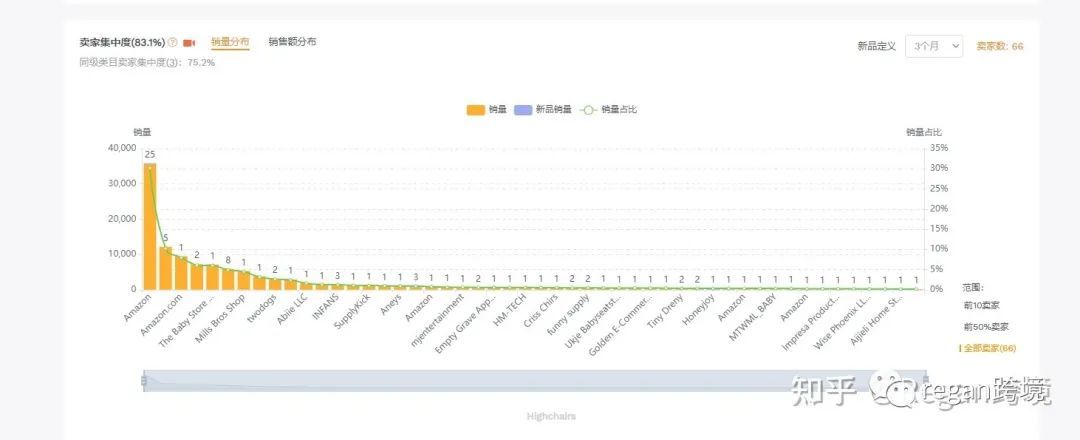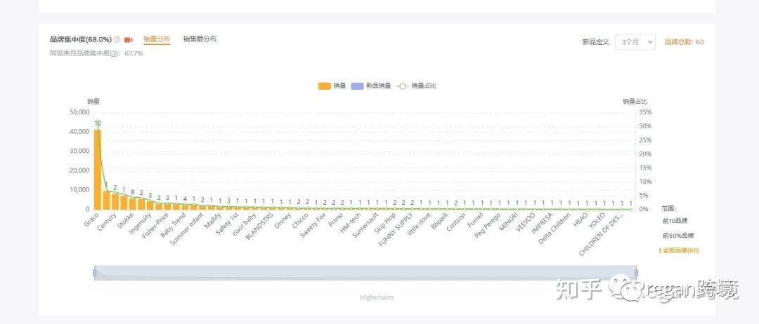 可以看到关于链接, 品牌,卖家的集中度是多少,这个垄断程度根据个人的标准进行评判,但是尽量不要做垄断程度太高的,这种市场也不是我们的目标市场。