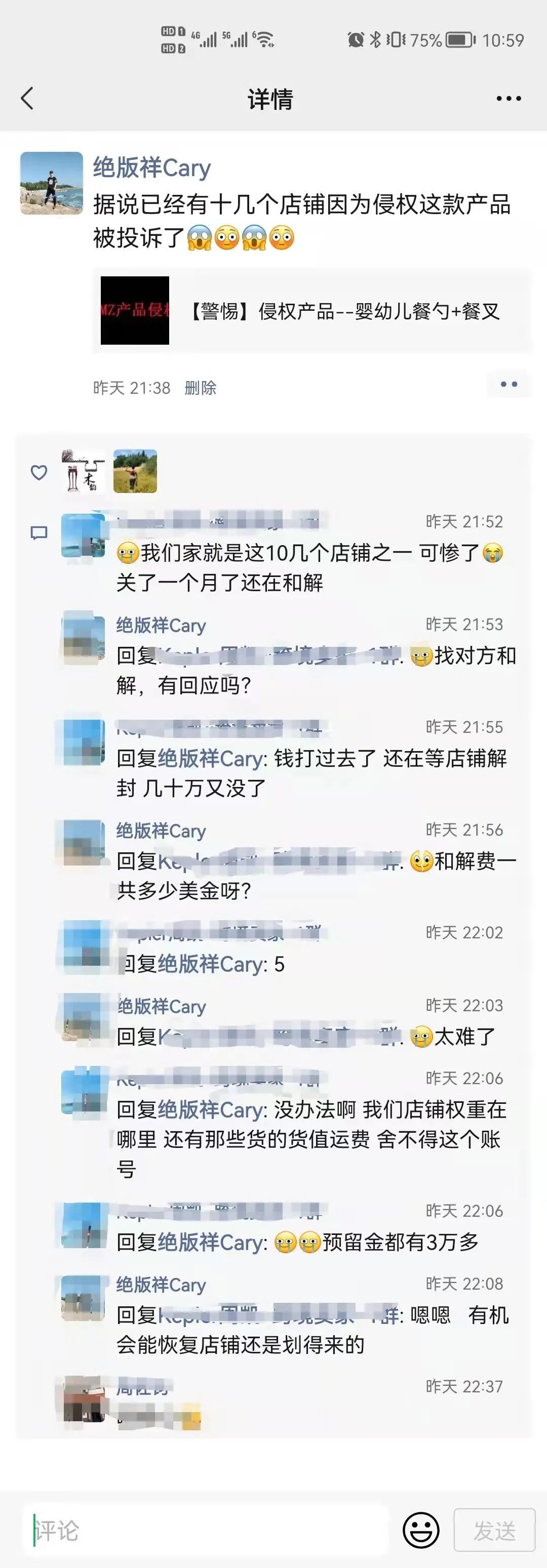 前天发的文章《【警惕】侵权产品--婴幼儿餐勺+餐叉》,讲到了一款组合产品被不少卖家侵权,导致有十几个卖家被投诉封店了。