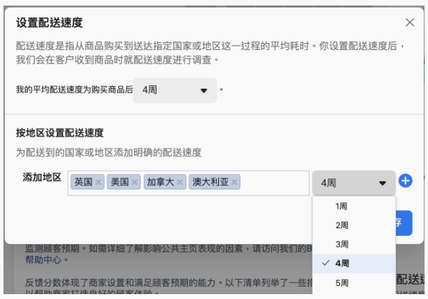 按照自身物流的实际情况,更新Facebook网页评分面板配送速度的设置。同时建议您积极搜集物流商、供应商提供的官方证明,以在客户反馈分数过低的情况下进行申诉。
