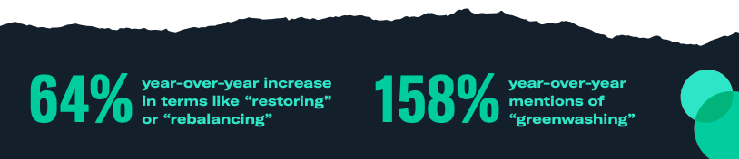 Twitter 的数据显示,有关"恢复"和"再平衡"这样的关键词同比增长 64%,而"greenwashing"(漂绿)这样的词汇则同比增长了 158%。
