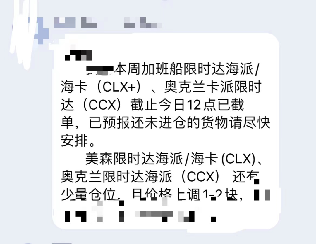 部分货代都已经发出通知,加班船都已经提前截单了。