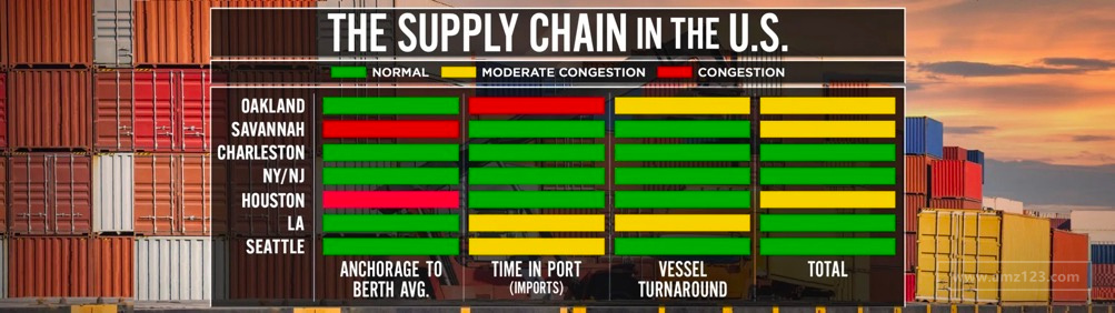 CNBC的最新供应链热图揭示了当前国内港口的货物流动状况