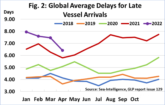 此外,船公司船舶到港的平均延误时间再次减少,2022年4月减少了1.04天至6.41天。这.............