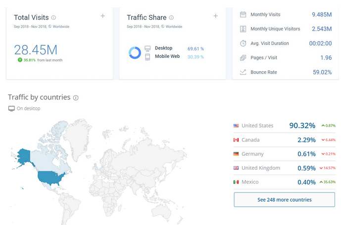 从流量维度来看,Kinja月流量为250万,90%流量来自美国(用户来源地很聚集),其中男性占比70%。