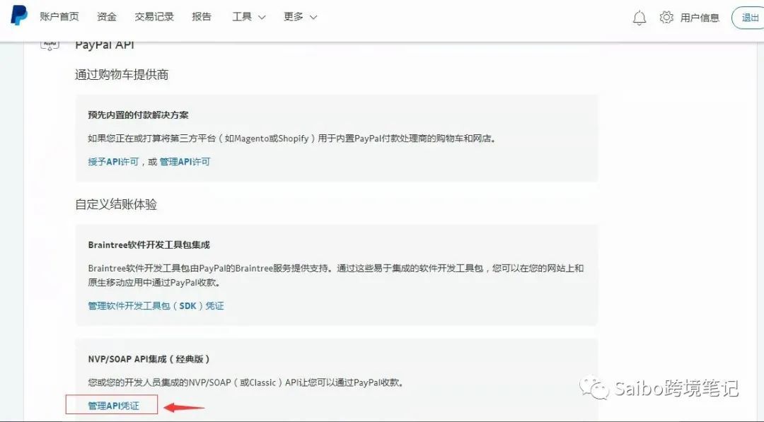 由于大家的Paypal后台版本可能不一样,所以我直接介绍一种最快捷的方法。