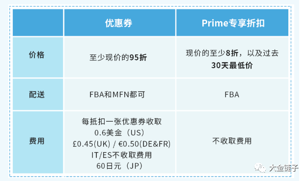 3.价格:和京东618一样,这个时候商家要尽可能给买家促销的折扣,促销力度越大销量相对肯定越好。那么促销折扣一般我们会做优惠券和Prime专享折扣,区别如下: