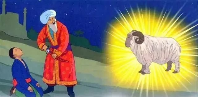 据古兰经记载,真主安拉为了考验先知易卜拉欣,在梦中命令他把心爱的儿子宰掉献祭。易卜拉欣完全服从真主的命令,准备将儿子宰掉献祭给真主。真主验证了易卜拉欣的忠诚后,派大天使背来一只黑头羝羊代替易卜拉欣的儿子作为祭献。