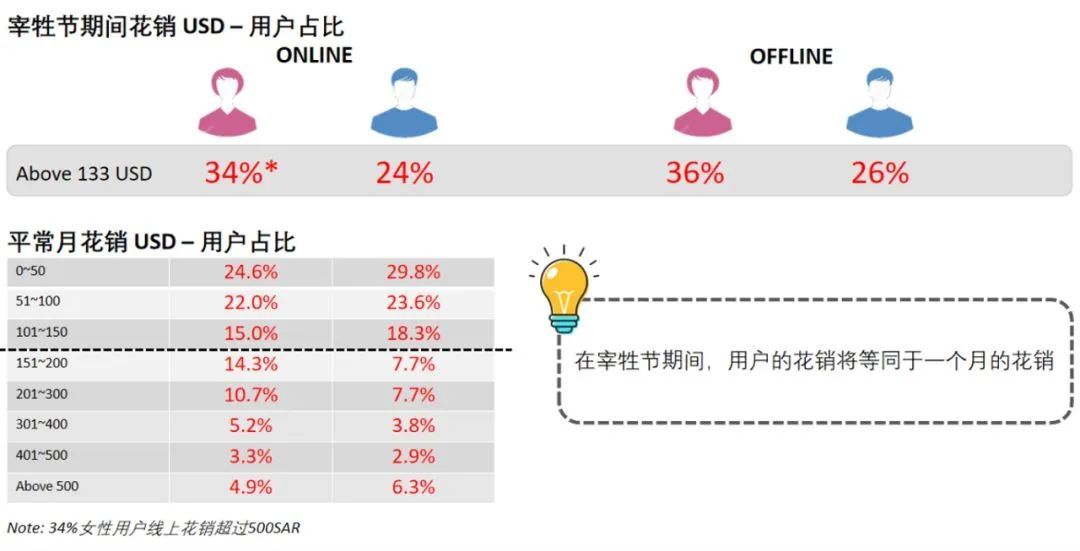 据数据显示,在宰牲节期间,女性比男性更喜欢购物,其中34%的女性线上购物花费超133美元。