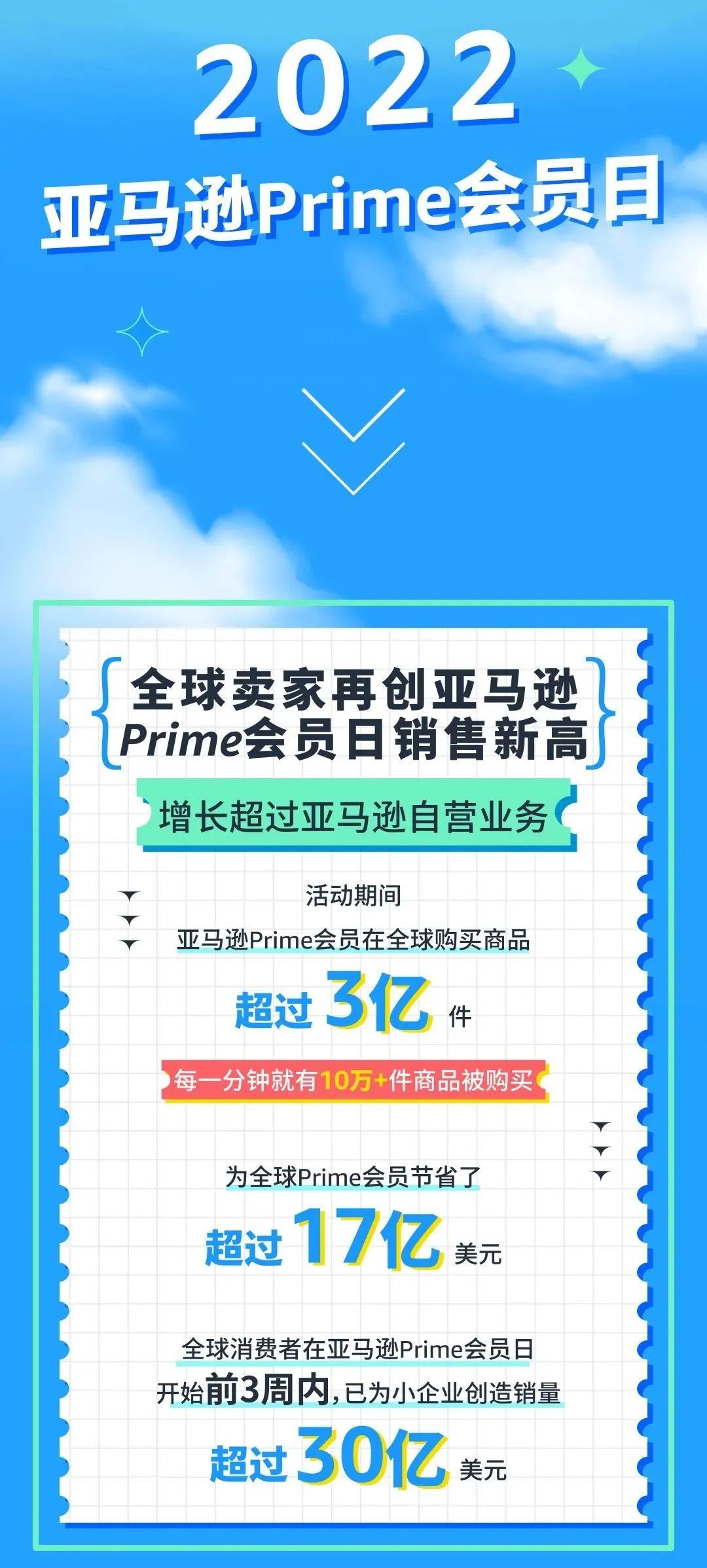 根据亚马逊官方公众号——亚马逊全球开店发布了本届大促的销量数据:2022年,亚马逊Prime会员日,全球卖家再创亚马逊Prime会员日销售新高,增长甚至超过亚马逊自营业务。