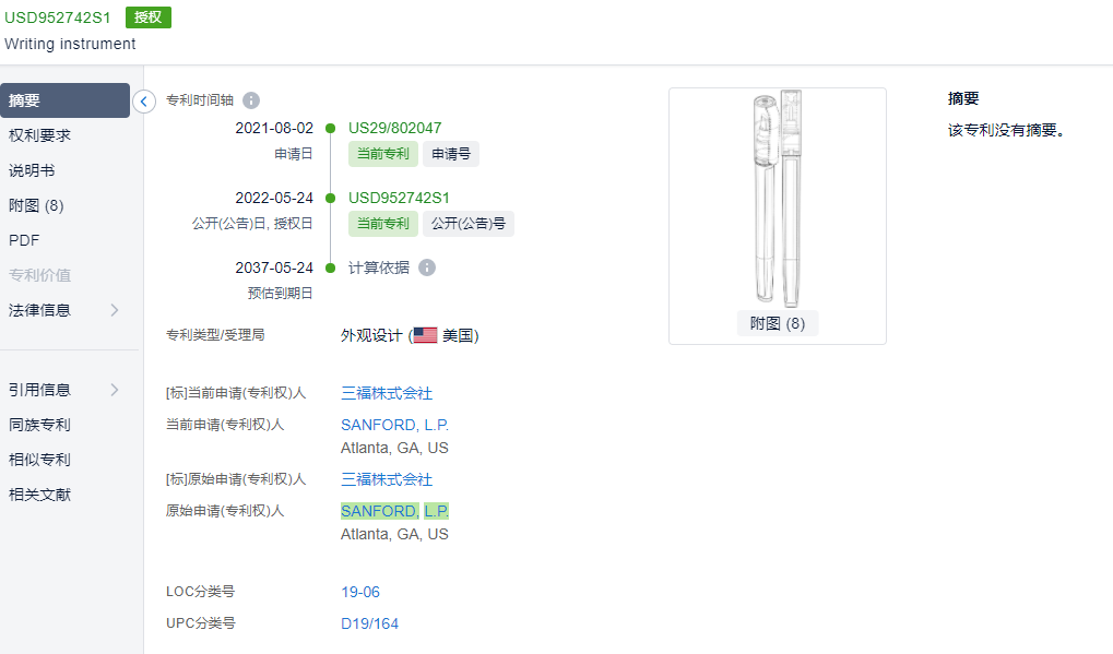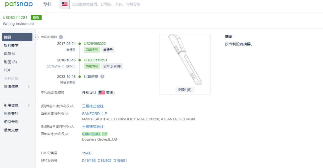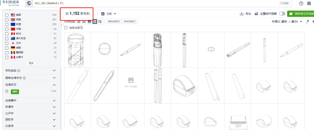 权利人Sanford L.P.旗下有效的专利产品有1152条,专利布局范围覆盖十多个国家。