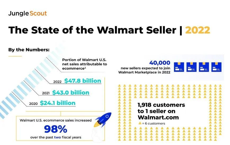 据《2022年沃尔玛卖家状况报告》显示,沃尔玛月流量4.57亿,目前卖家数量15万左右,预计2022年再新增40000名。