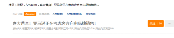 有卖家在跨境论坛网站上发布了一则关于《喜大普奔,亚马逊正在考虑舍弃自有品牌销售!》的帖子,引发了广泛的关注。
