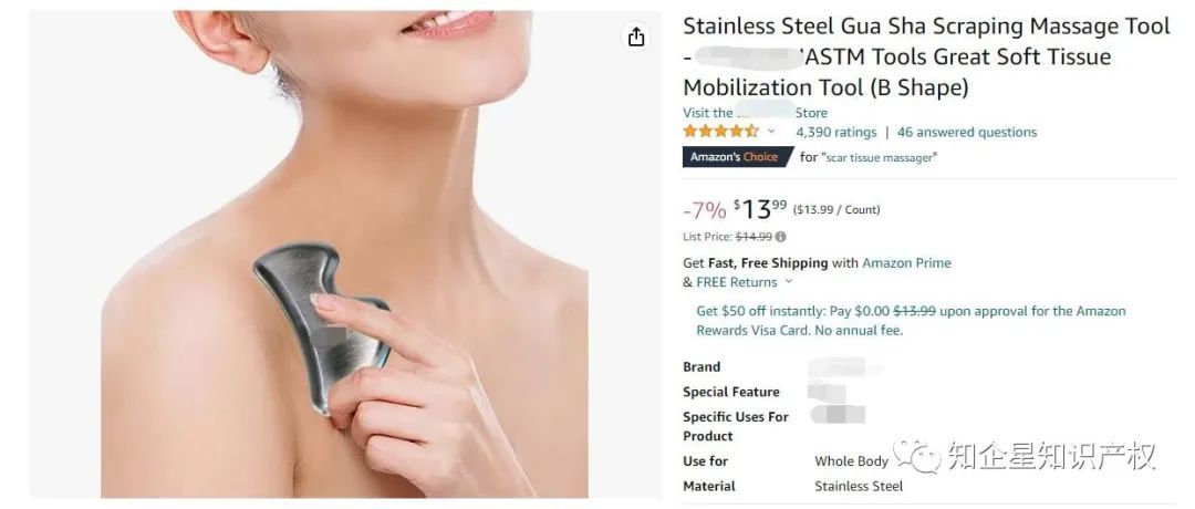 杜绝专利侵权风险,为您的产品保驾护航!不管简单与否,只要和现有产品相比,在形状及图案上,做有新的及富有美感的设计,就可以申请外观专利。今天分享一款刮痧板,它是美亚站的Amazon'sChoice,售价13.99美金,留评4411颗星。