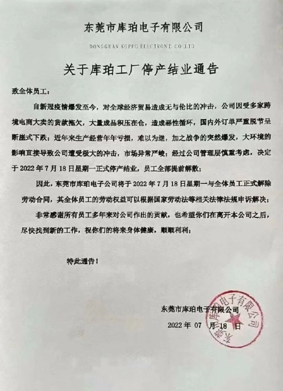 近日,这家知名跨境供应商——东莞库珀电子正式宣布工厂停产结业!在整个华南的跨境圈都引起了轰动。
