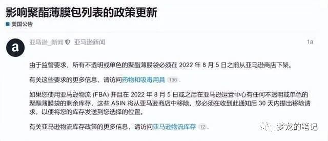 所有不透明或单色的聚酯薄膜袋必须在 2022 年8月5日之前从亚马逊商店下架。