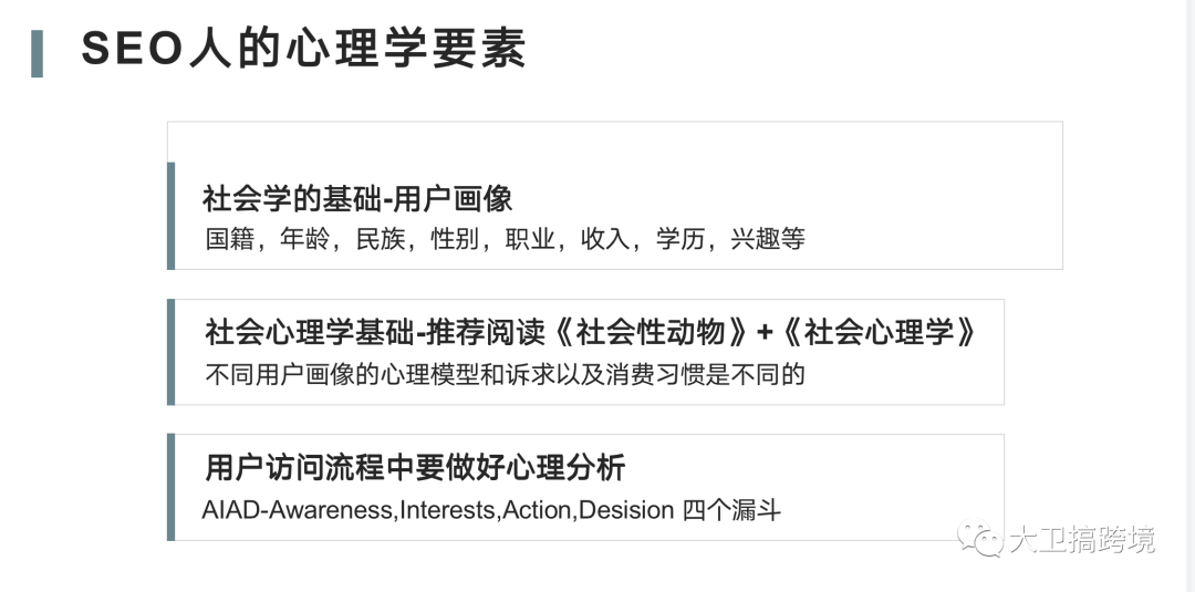 SEO也是营销的一种基本手段,就跟广告,社媒渠道一样都需要有心理学的知识储备,一流的广告营销大师都有非常厉害的心理操控能力。